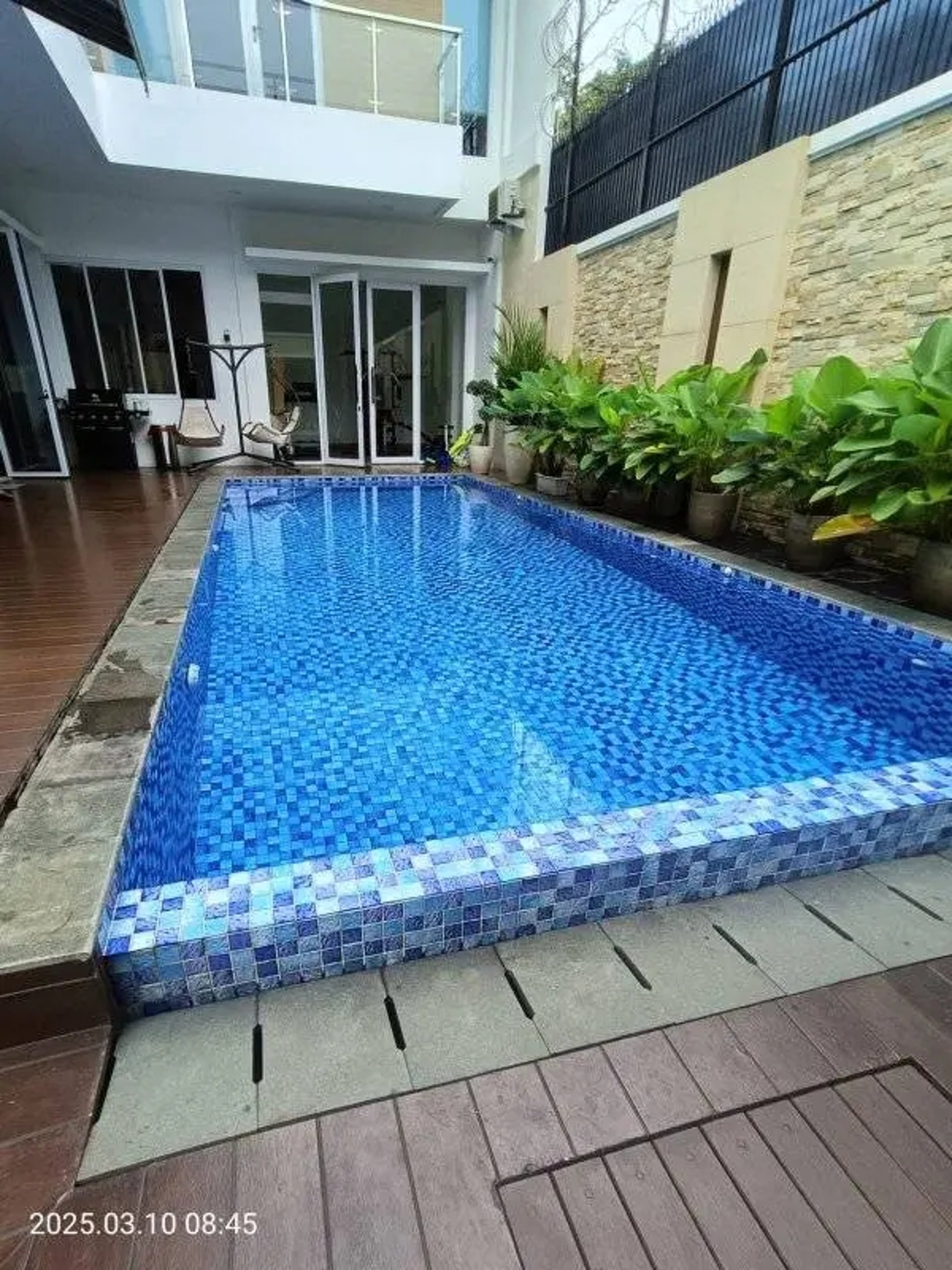 Menggunakan material alami seperti batu dan tanaman, kolam renang natural menawarkan suasana yang lebih sejuk dan ramah lingkungan. Desain ini cocok untuk rumah-rumah di Karawang yang berada di dekat area hutan atau taman.